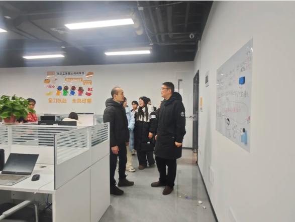 在河南名骏科技管理有限公司负责人郑梅涛的陪同下,荆伟科一行实地参观了企业办公区、项目研发中心及学生实习实训基地,详细了解企业业务布局、岗位需求及人才培养体系。郑梅涛对商学院学生的综合素质给予高度评价,指出实习学生“专业基础扎实、学习能力强、适应岗位快”,在客户服务、数据分析等核心岗位上表现突出,为企业发展提供了有力支持。