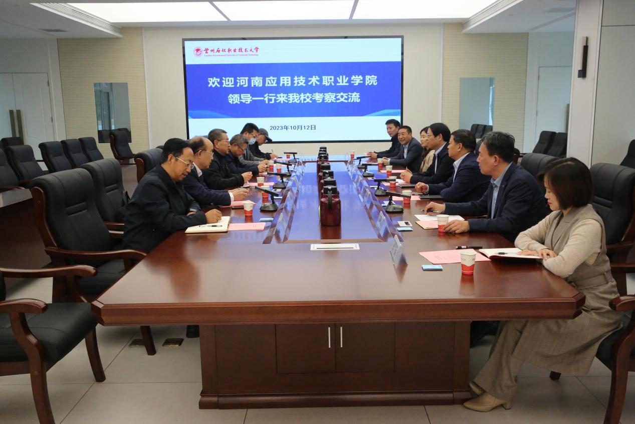 为进一步推动学校高质量发展,加快提升学校整体办学水平和办学层次,借鉴省外兄弟院校在党建、“双高”建设方面的工作经验,10月12日,河南应用技术职业学院学校党委书记闫俊山带队前往兰州石化职业技术大学开展考察调研。副校长刘振民,党委委员、党委组织部部长兼本科部党总支书记滕文锐及党委办公室、发展与质量管理处、校企合作与就业处、本科部有关主要负责同志参与调研。