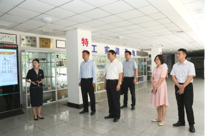 闫俊山一行在杜振波的带领下实地参观了大学生就业创业服务中心、化工实训中心、经贸管理实训中心、电气自动化中心等,重点了解了实验实训平台建设、产教融合和校企合作等方面工作情况,并与相关负责人进行了现场沟通探讨。