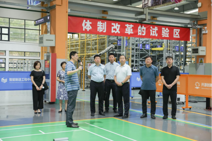 6月30日,薄新党一行在无锡职业技术学院参观了该校国家级实训基地——智能制造工程中心,并就产学研深度融合过程中创新体制、管理运行机制等问题进行现场交流。随后,双方进行交流座谈。无锡职业技术学院校长周桂瑾对薄新党一行的来访表示热烈欢迎,并分享了学校在“双高”建设、人才培养、师资队伍建设、产教融合等方面的成果和工作经验。薄新党对校方热情接待表示感谢,对学校基本办学情况和各项工作开展情况进行介绍,双方参会人员结合工作实际开展了深入研讨和友好交流。