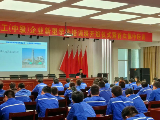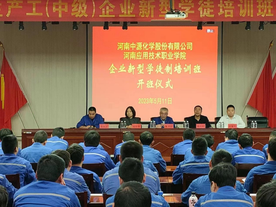 2023年5月11日,由南阳市桐柏县人社局主办,河南应用技术职业学院化学工程学院承办的中源化学“新型学徒制”培训开班仪式在南阳举行。博源集团副总经理郭开宏、学校继续教育学院院长孟付荣、本科部主任蔡庄红、化学工程学院副院长岳瑞丰以及160余名学员参加了开班仪式,开班仪式由博源集团副总经理黄国祥主持。